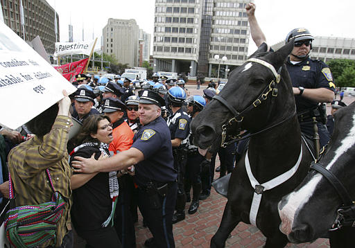 NECDP leads protest agaisnt "Boston Celebrates Israel" June 19, 2005, Boston Government Center. (AP photo)